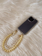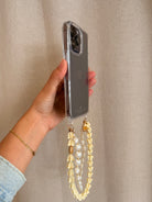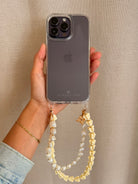 Our clear phone case featuring our Oceans End designer brand logo and includes two small attachment loops at the bottom, allowing you to style it with our signature charms creating a personalized, elevated look.