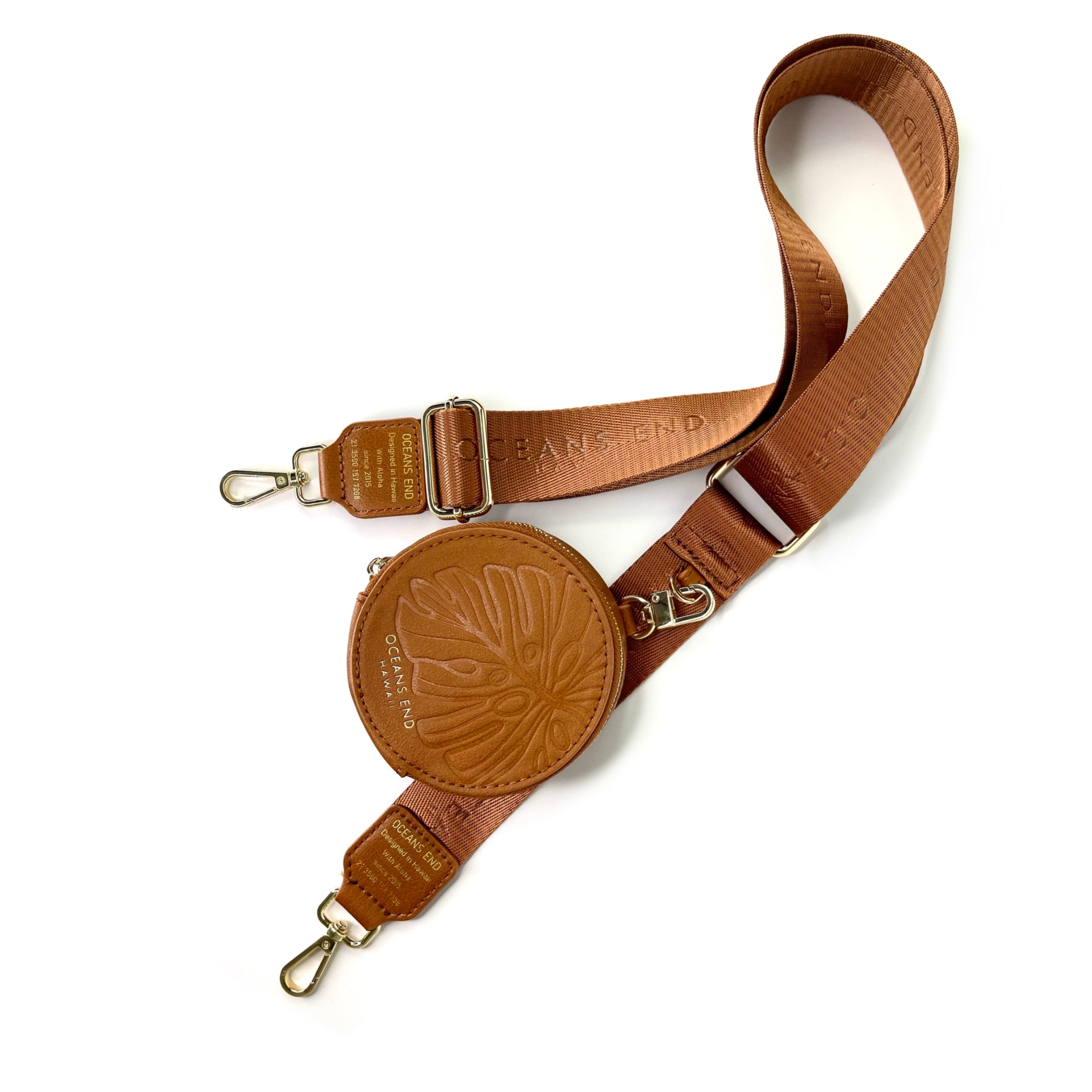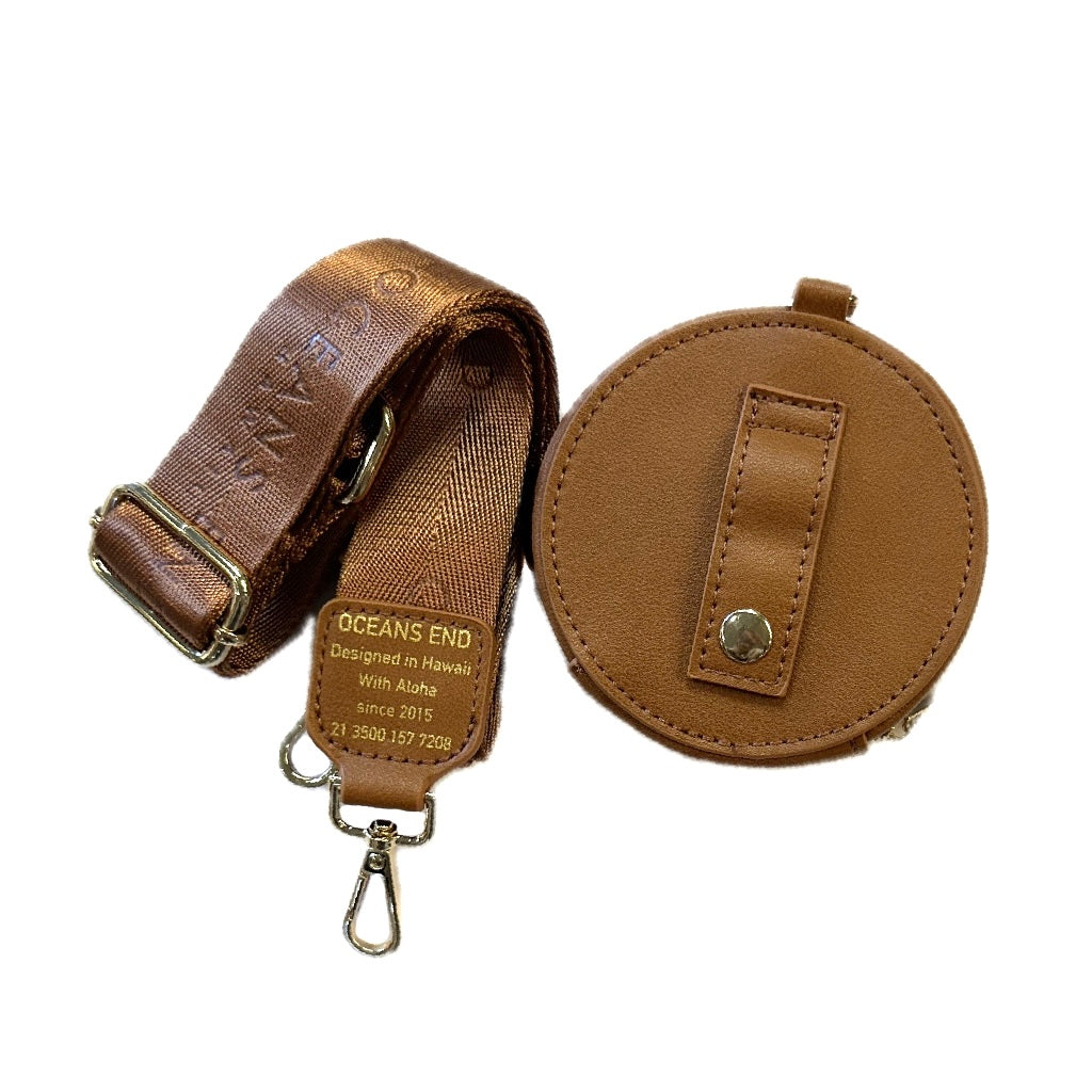 Our luxury strap but with an ADDED SNAP FEATURE. Adjustable luxury strap with brand name. Features detachable round pouch with custom print and snap on back to wear on a belt (compatible with any 1.5” belt or thinner)